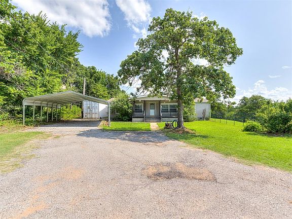 Rare 5.74 ACRE LOT Is Located in a Secluded Area, But Close to Everything! This 3 Bed/2 Bath Immaculate Home Has a 2 Car Covered Parking and Sits off a Paved Road with It's Own Private Drive! 50X50 SHOP WITH 2-14 Ft OVERHEAD DOORS AND 6 INCH CONCRETE FLOORS! 8X10 SHED AND 8X40 CONNEX BOX! Wood Look Vinyl Flooring Throughout and Completely Move in Ready! FENCED BACKYARD Ready for Animals! Located 5 Min From Tinker and 10 Min From Great Shopping and Eating! Enjoy Quite Mornings on the Large Decks Located on the Front and Back of the Home! Come Check out this Quiet and Peaceful Property with Country Style Atmosphere!