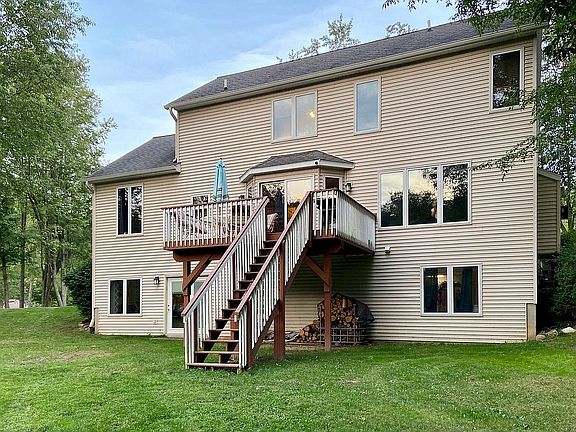Rare 2 story home featuring a finished walkout basement. This home rests on the corner lot with over an acre of property containing mature trees and therapeutic woodland garden to relax by a bonfire. The home boasts ample parking, 12x12 shed and invisible pet fence. This turn key property offers a spacious layout featuring newer paint and high quality hardwood floors. This home has a recent walkout basement remodel with open space, kitchen/wetbar and a large bedroom/in-law suite. This level also features a stunning full bath with large claw foot soaking tub/shower. Upstairs master bedroom suite has walk in closet, double sinks and jacuzzi tub. 2 additional bedrooms and a full bath compliment the upper level.