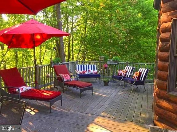 Looking for privacy?? This is it! This log home is nestled on 3 very private, mostly wooded acres. You will love the spacious rooms with hardwood floors. The huge 1st floor Master Suite has walk in closets, a gas fireplace, and claw foot tub. You will love the vaulted 2 story ceiling in the great/living room with a second fireplace complete with a pellet stove insert and a second floor gallery. On the second floor you will find two large bedrooms with walk in closets, extra storage and pine flooring. There is also a finished lower level with a spacious family room with built-ins, a kitchenette, a second laundry room, bonus room, workshop and a third full bath. This private oasis borders the Heritage rail trail. Step out onto your maintenance free deck with your morning coffee...you will be overlooking the wooded area... you just might see a small herd of deer or other wildlife. There is lots of outdoor living space with the wrap around side decks and the oversized rear deck. Just minutes to all conveniences such as dining, fitness and shopping and I-83. It's very pretty up here on the hill.... come check it out!