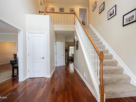 With over 2600 square feet of space above grade, this open floor plan is designed for entertaining and comfortable living. The 9' ceilings on the first floor enhance the spacious feel, while the numerous upgrades throughout the home add a touch of sophistication. The formal living room, complete with crown molding, flows seamlessly into the formal dining room, which is perfect for hosting gatherings of any size. The dining r boasts upgraded lighting, wainscoting, and crown molding, creating a warm and inviting atmosphere.