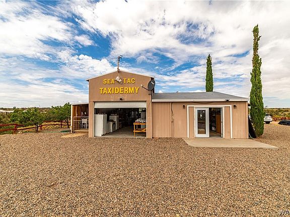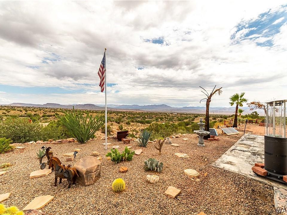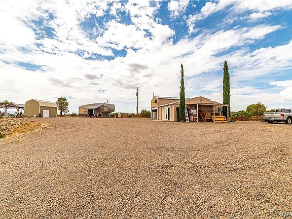 This is a beautiful 4.6 acre property with extraordinary panoramic views. The north boundary of the property boarders Arizona State Trust Land that will not be developed. This is a turn key recreational and home building site property with plenty of room for your toys.This a outdoorsmen s paradise. Property includes: Existing RV and home building site located hilltop and adjacent to patio area with mature landscaping supplemented with Exotic Palm Trees, Joshua Trees,Yucca s and Cactus. It s ready to develop and replace previous home lost due to house fire December 2021. Two RV sites, One detached garage and fantastic insulated air conditioned and heated work shop. Two additional buildings. One insulated 7 x 8 pump house/storage shed , One 12 X16 two loft storage shed, plumbed for propane washer and dryer and located next the the 12 X14 gazebo located on the patio and landscaped garden that over look our majestic Arizona landscape. For your security the property is fenced and cross fenced with a security gate keypad entry and remote control access. Two security cameras with motion sensor lights that can be accessed by your phone. In addition to the 100 solar lights on the driveway, existing landscaping and automatic light sensor security light on electrical service power pole. Invisible electric pet fence is already installed to protect your best friends. Electric service panel and installed septic system will support.One home, One Garage, Workshop and Two RV sites. One 50 AMP. and one 30 AMP service with power, water and propane hookups. One 500# Propane Tank?, Two covered 2500-gallon water tanks totaling 5000-gallon water storage. (Property is water Haul) CC&Rs & Maps available upon request.