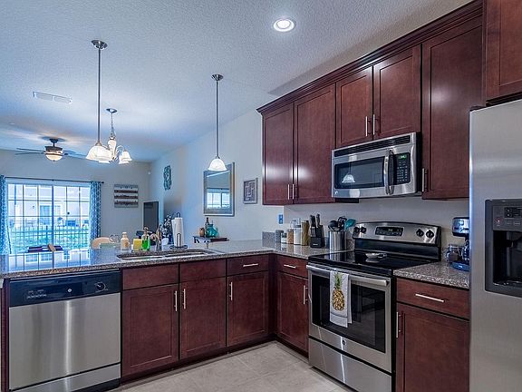 Solid granite counter topsCommunity poolBack porch patioDesigner kitchenPeaceful lake with fountainStainless steel appliancesBrick paved driveway