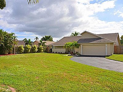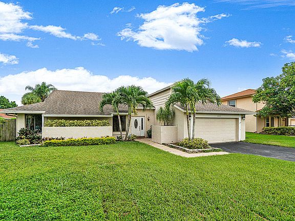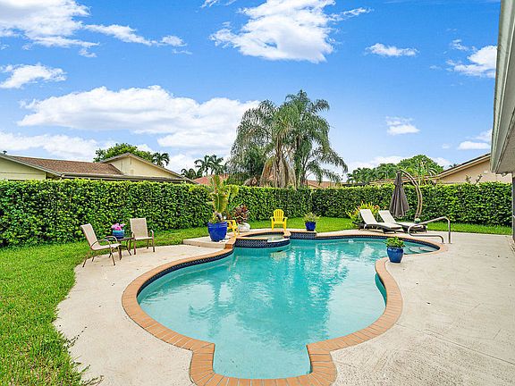 Live the South Florida lifestyle in this wonderful West Boca home! Brand new AC, beautiful wood plank style tile flooring in most of the home, upgraded wainscoting, stunning upgraded kitchen, enjoy family and friends gathering around the fire place in the conversation pit of the living room. Beautiful free form pool in an over sized private lot with lush Podocarpus landscaping and separate screened patio. This 3 bedroom, 2 bathroom all ages and pet friendly home is on a cul de sac in the popular neighborhood of Cimarron.