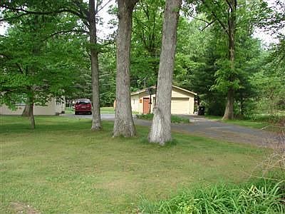 Rare Find! 4 bedrooms, 2 full baths, 2 story on 1.2 nicely wooded acres, new kitchen 2009, main floor family room with custom built-in entertainment center, fireplace in living room, newer sun room, dining, main floor master w/lg walk-in closet & attached full bath, beautifully refinished hardwood floors on main. Three additional large bedrooms up and a brand new full bath up--2012. 2.5 car garage with new roof and shed for storage. Wooded lot, circular drive, so many updates. Vinyl siding, new roof on house in 2005, plumbing, floorings, paint-beautiful decor and very spacious rooms. Must See!