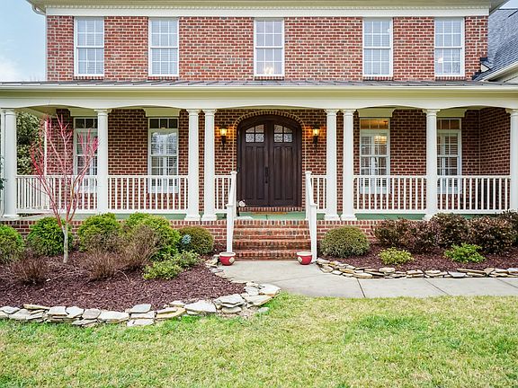 Stunning executive home on cul-de-sac in popular Brier Creek Country Club. The Davidson Federal floor plan is designed for optimal living and entertaining with room for all your needs. Elegant brick front with large porch welcomes you home as you enter the double mahogany front doors. Impressive 2 story foyer and hardwoods throughout the entire main level. Upgrades include: refinished hardwood floors, fresh neutral paint, luxurious primary bath, kitchen cabinets painted, new roof in 2023, upstairs AC in 2022. Numerous light and plumbing fixtures have also been upgraded and most closets provide custom built in shelving. Generous sized formal dining room with tray ceiling and plantation shutters. Formal living room with plantation shutters opens to family room. Kitchen with granite, stainless appliances island with bamboo countertop, private pantry and butlers pantry. Family room with built in shelving and a gas FP. Main level office is privately situated for your work at home needs. Back staircase leads to a second level bonus room, large primary suite with exquisite bathroom renovation, plus 4 add'l secondary bedrooms. The walk up third level features a large unfinished attic space for storage or future expansion. A back covered porch overlooks custom paver patio, hardscaped stone wall, built in fire pit and flat fenced in yard. Permanent gas line for grilling too. Conveniently located in Brier Creek Country Club, where all residents are social members affording instant connections to new members of the community. Minutes from 540, 40 and 885 with super easy commute to RTP, including Apple's future new site. This home has been lovingly cared for and updated and is now ready for you!