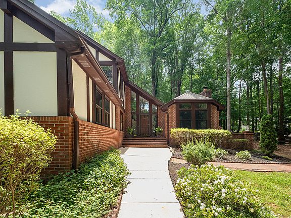 Welcome to this charming Tudor-style home nestled in the heart of North Raleigh's picturesque equestrian community Black Horse Run! Situated on just over an acre, this home greets you with a spacious family room filled with natural light and a cozy fireplace right off the entry. The gourmet kitchen boasts high-end maple cabinets with roll-out shelves for plenty of storage, granite countertops, and a marble backsplash, seamlessly opening to a breakfast nook with yet another fireplace. Entertain with ease in the formal dining room, or enjoy the flexibility of the bonus room on the first floor! Upstairs, the primary suite features dual walk-in closets and a fireplace, accompanied by two additional spacious bedrooms. The home offers ample storage with a huge walk-in attic and a dedicated workshop area. Outside, a private courtyard patio provides a serene retreat for relaxation and entertaining. This home is part of a unique neighborhood that offers horse pastures, over 11 miles of riding trails, a community pool and clubhouse, tennis and basketball courts, a playground, and a picnic area. All of this is set in the convenient and beautiful location of North Raleigh. Don't miss the opportunity to make this exquisite property your new home!