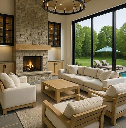 - Fireplace features: Glass Doors, Stone, Marble