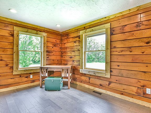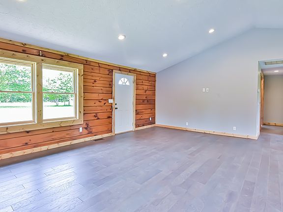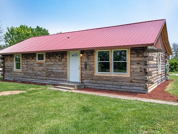 Entirely renovated log cabin with modern rustic appeal in a rural setting close to I-70 and just outside of Mooresville (30 mins to Martinsville, 45 mins from Bloomington). Wood sash windows, electrical, plumbing, tin roof, paint, bathroom fixtures, flooring and cabinetry are all completely new. You'll love driving into the property on this lovely 5 acre country setting surrounded by mature trees. As you enter the front door, you are welcomed by a large living area with vaulted ceilings, lighting and a floor plan open to the kitchen. You can't miss the new ultra water and stain resistant engineered hardwood flooring by Pergo that runs throughout the home, the new bright windows and the open modern kitchen with stainless fridge, stove and dishwasher. A mud room at the back of the home is ready with new washer and dryer hookups. The two bathrooms have all new amenities featuring efficient dual-flush toilets and unique gorgeous tile you have to see for yourself. The master suite has new natural wood stile and rail doors, a large closet and exposed logs that add cozy cabin charm. The 5 acres are flat with a small creek running through it. There is a large pole barn currently used as a garage with electricity with space for a woodworker, artist or just storage. Schedule your visit today and experience this unique property.