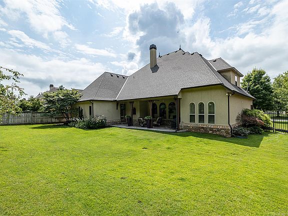 *Elegant Custom Home Backing to Greenbelt in Desired, Gated Jenks SE Neighborhood. Stunning wood floors. Vaulted/beamed Family Room w stone FP & built-ins opens to granite Kitchen w large island, breakfast nook, & butlers pantry. Secluded vaulted Master Suite w dual walk-in closets & dual vanities. Guest Suite Down + handsome Office w built-ins & stunning Formal Dining. Fully equipped Home Theatre w wet bar + Game Rm Up. 3 Add'tl Bedrms. Ultra private outdoor oasis, covered Patio w room for pets & play.PS