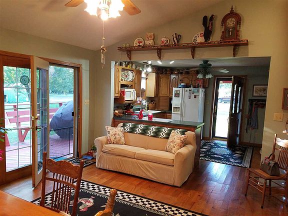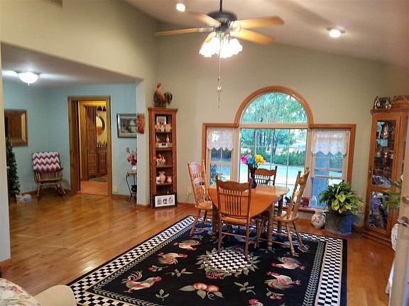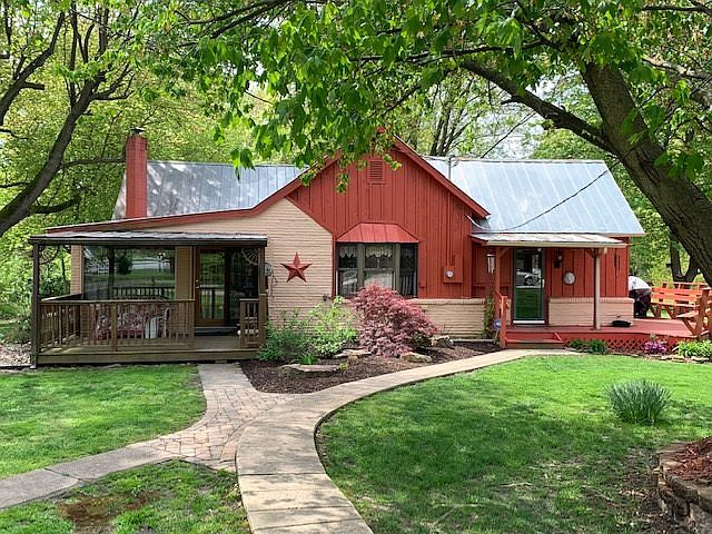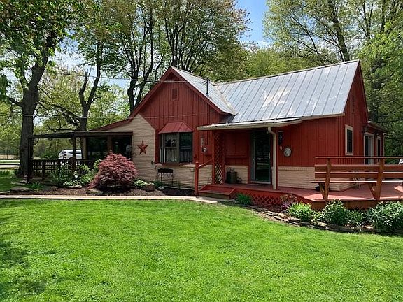 Perfect setting for a Farmette! Charming farmhouse on 4.91 acres in a 4 star school district. View the beautiful spring fed creek that runs through the property from the dining room window. Watch your horses out in the pasture. See beautiful perennials blooming from spring to fall. Relax on the front covered porch or catch some rays on the back deck. The kitchen & DR are open concept w/ a vaulted ceiling & HW floors. A large master suite was added in 2015, including a therapeutic walk-in bathtub, shower. The large living room includes a pellet stove for a supplemental heating source. This 2 BR home could easily be converted to 3 BR by adding a wall to the large living room/den. There is a new efficient furnace & hot water heater. There is a 4 car detached garage with a workshop, circle drive, 30 x 45 pole barn with a 10 foot lean-to & a horse stall with a large fenced in pasture. "Country living" that is close to town for shopping.