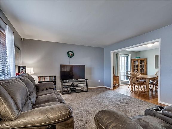 A great use of square footage with three full bedrooms, two living areas and two dining spaces. The first living space is roomy with a large picture window providing views of the front yard. Connected to this is the formal dining room. The open area on the other side has the kitchen, breakfast area and additional living room with fireplace in a flowing layout for great friends and family times gathered together. Kitchen has room for bar stools and living features bookshelves that flank the brick fireplace with double sliding doors leading you out to the covered back patio. Here you'll find another perfect area for families- a fenced in backyard with mature trees and space for any outdoor activities! All bedrooms have ample closet space and both full bathrooms offer shower/tub combos. Generous laundry/utility with room to store. This neighborhood is convenient to the turnpike, shopping and dining with quick access to either Edmond or OKC to suit all of your daily needs. Welcome Home!