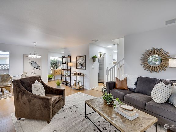 Welcome to this beautifully maintained townhouse located in the highly sought-after Garden Grove Community, offering an unbeatable combination of convenience, comfort, and exceptional value! Perfectly situated just minutes from Boeing, with easy access to I-5, bus lines, and nearby shopping, this home is ideal for those who value both tranquility and accessibility. Step into a move-in-ready, meticulously kept home that exudes warmth and sophistication. As you enter the inviting foyer, you'll immediately notice the gleaming hardwood floors that flow throughout the main living areas, creating an elegant space. The bright, open layout provides a perfect balance of functionality and style, making it ideal for everyday living and entertaining.
