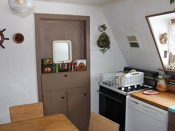 This unique property offers a ton of potential and is somewhat of a Beach Road Landmark. This is a former excavating company and year around home. This first floor is comprised of a 4 stall heated garage, laundry/bath and office. The rest of the living area is on the second floor. This home is a bit dated but has been lived in on a year around basis until October of 2018. There is a large deck off of the family room and a small guest cottage. Located just a mile north of Sister Bay this would make a nice starter home or with some updating a great rental with lots of storage for you.