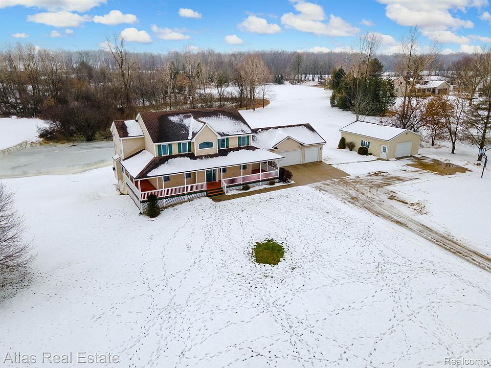 *MULTIPLE OFFERS* Calling for Highest and Best by 1:00 pm Monday January 29th.!! Stunning Home! Stunning Property! This is a Must-See Colonial on 10 gorgeous acres in Goodrich. This 5 bedroom 3.5 bath home is family perfect. Primary bedroom is on the first floor. Beautiful flooring, spacious kitchen, large bedrooms and fire lit living room and lower level recreation room for years of enjoyment. 3 car garage and a 24x32 Pole Barn for all your toys! Not to mention the property has wildlife galore and is peaceful and has a quiet country setting. The totally finished walk out basement will give you the extra space you want and need. Give this home a look and you will not be disappointed! Appliances are new and included! Pole Barn has RV hook-up and 440V