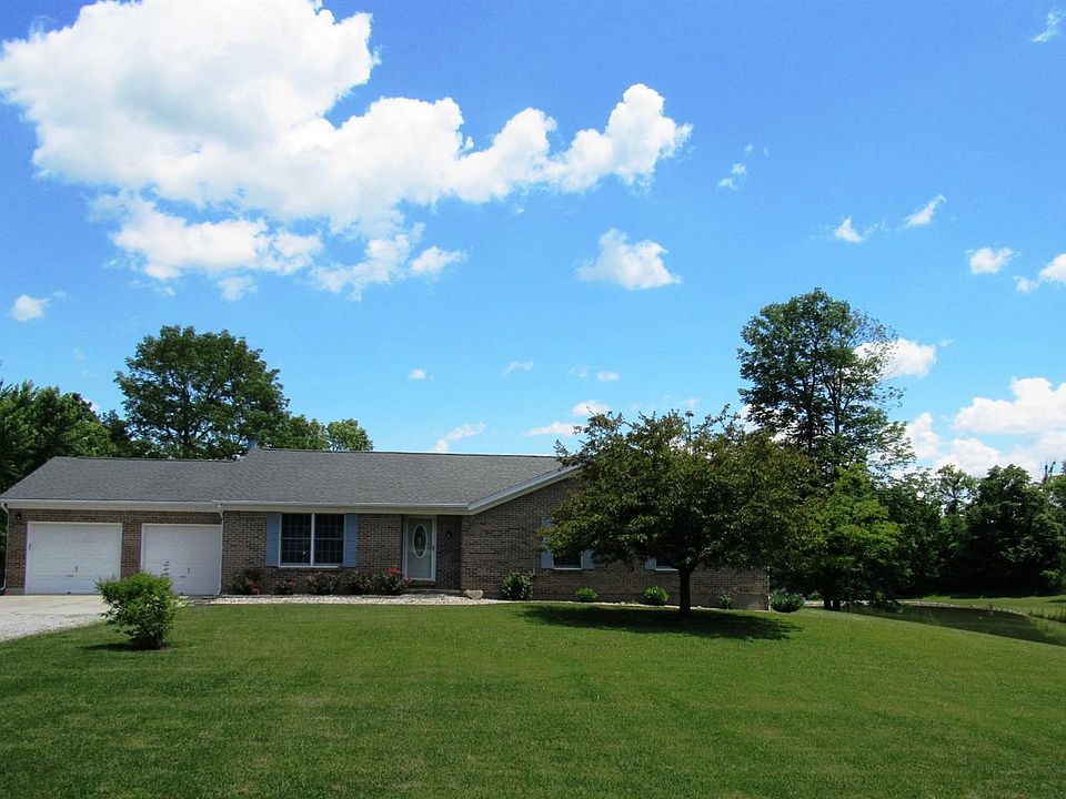 3 bd brick ranch w/2-c att'd garage,full bsmt - part fin w/1/2 bth & frpl;fiber optic internet; geothermal heat;2 stocked ponds;smaller 'habitat frog pond';trails;abundant wildlife;deer stands;above grnd pool; park-like setting w/pecan, apple, cherry trees;3-gar door barn w/ concrete flrs & electric - great for add'l parking & workshop area.