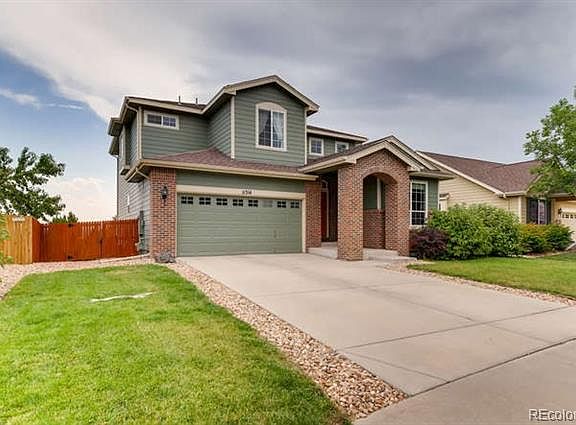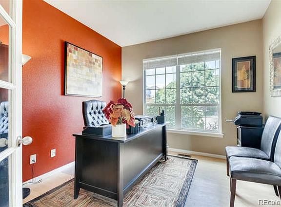 Beautiful 2-story walkout backing to open area with views of Downtown Denver. This home has many inviting features from the two-story ceiling, Hardwood Floors and New Carpeting to the abundance of Natural Light! The floorplan plan flows from the Foyer to a quiet Study w/French doors, to the large Formal Living space (can be converted to formal living & dining). To the Family Rm. which opens to the kitchen with a wonderful view of Downtown Denver, & 4th of July Fireworks. The Kitchen is spacious w/eat-at Island, large Nook, access to Deck & Laundry Rm. Upstairs is a sizeable Master Bdrm/Bathrm. also w/a view of Downtown Denver, an ample Master Walk-in Closet and two additional Bedrms. & Full Bath. The Full Walkout Basement is currently showcased as a gym and is semi finished as is the Basement Bathrm., offering a great head start for someone looking to finish the space. Great community parks & trails and conveniently located to shopping, recreation, Interstates and DIA!