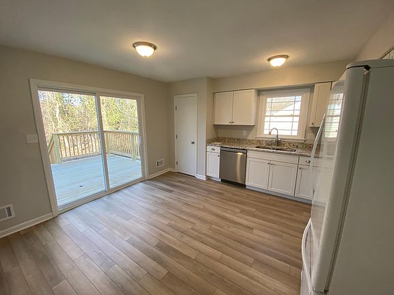 Welcome to a gorgeous, fully renovated home in Oldham County. Beautiful hardwood type flooring throughout. Spacious eat in kitchen with granite and stainless appliances. Large Master Bedroom with attached bath and two closets ... storage is not an issue with this home. Private backyard with immense shade trees and a beautiful new deck. Enjoy the ease of Louisville living with the bonus of Oldham County schools. No smoking. No pets. We are unable to accept Section 8 housing. Tenant pays all utilities: water, gas/electric and garbage.