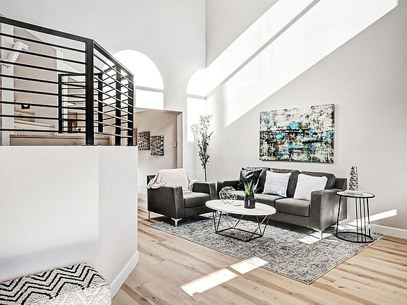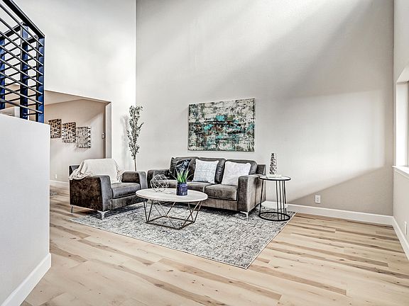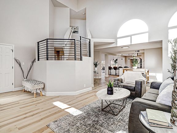 The Greatest of all great rooms is located in this home! It is 35X34 with soaring tongue & groove wood ceilings, clear story windows, skylights and several sets of sliding glass doors to take in the mountain views and bathe the home in light. Open kitchen has huge eat at island, with waterfall quartz counters, corner pantry, and stainless steal appliances including a wine fridge. Tons of storage & work space. Generous primary suite with large walk in closet, double sinks, freestanding tub, privacy toilet, & frameless glass shower. Upstairs hall bath has double sinks. All 4 bedrooms have views. Front formal living room also has clear story windows. Easy maintenance waterproof wood look floors throughout. Oversized 2 car garage with pull through door to the back yard. All on of an .89 acre.