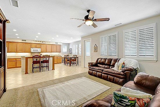 The upper level accommodations include a large Primary bedroom Suite Retreat with a big private Bathroom that cultivates calmness with its sleek and minimalistic design, a well designed 2-sided walk-in closet, a highly desirable Tub and a Walk-in Shower that rests on custom tiled flooring.... The upper level accommodations also include a multi-purpose living Loft space with a closet that adds functionality, style, and value to this home's second story, plus 3 sizable bedrooms, a generous Linen closet and an additional full bathroom in the Hallway....... The rear yard has just as much to offer as the interior. The dream Landscape has multiple Fruit Trees, lush lawn, and potted plants sharing the shade under the Alumawood covered patio..... As a resident of Fairway Canyon, you will have access to exceptional amenities, including high-speed internet, Swimming Pools, multiple parks, big Fitness Center, Meeting room, Library, and an active community lifestyle filled with community activities.