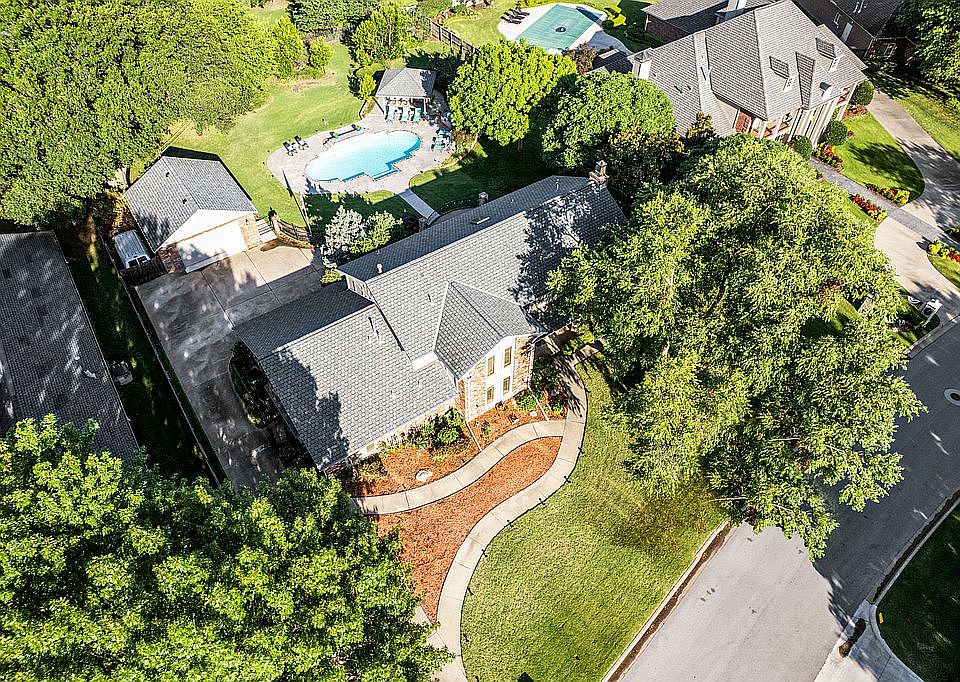 Real Estate Agent Owned, Open plan, updated 2 story with 5 bedrooms or 4 beds plus game or theatre room. Upstairs master with large balcony overlooking pool, 4 full baths, 1 half bath and home office. TWO 2 CAR GARAGES (4 CAR) AND MOTHER-IN-LAW PLAN with separate entrance. Gated driveway, sprinkler system, Tornado shelter, Jenks schools. NO HOA!