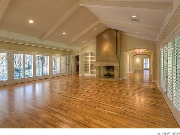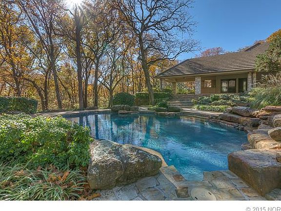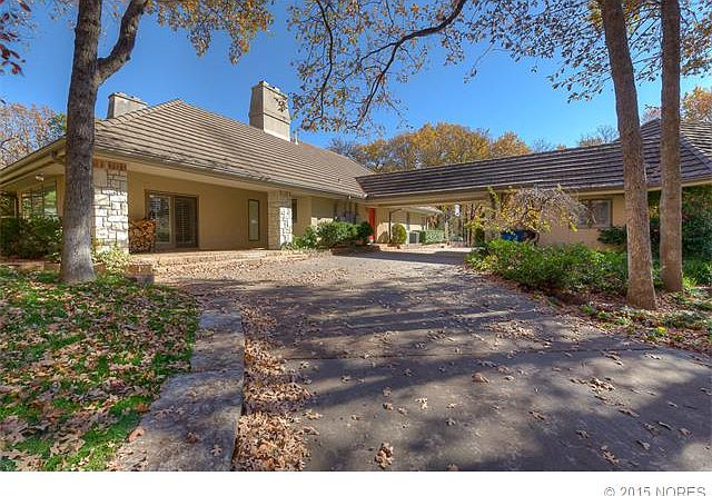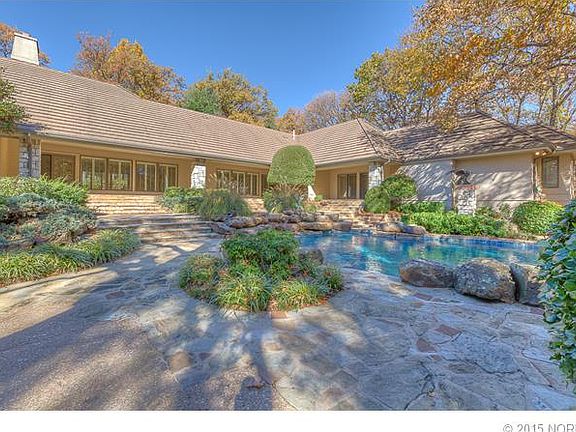 One of a kind Jack Arnold contemp ranch style on 6+ wooded ac in S Tulsa. Beautifully updated open plan w/dramatic views & outdr access from every rm. Expansive hrdwds,chef's kit &luxurious mstr w/off. Bsmnt game/media. Massive outdr spaces surround pool.