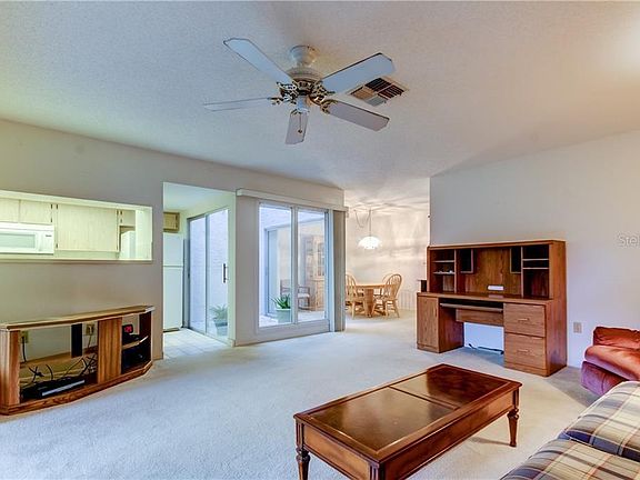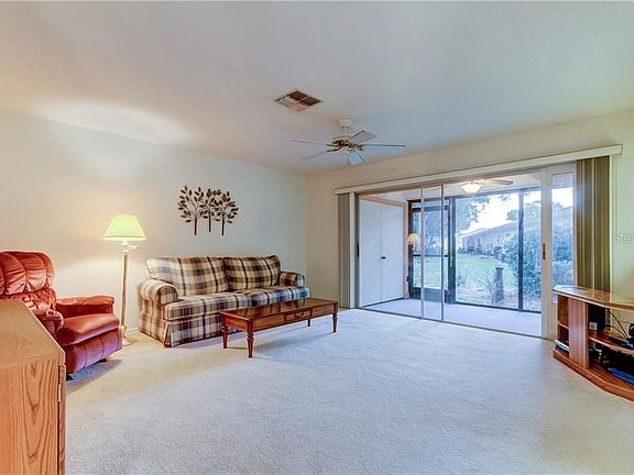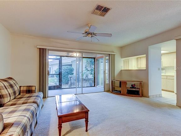 Dont miss this spacious 2-bedroom 2- bath condo in the Chateau Village Condo II of Timber Oaks! Lots of amenities to keep you busy whether you like to swim, workout or play tennis. There is something for everybody in this condominium community. Walk through the Floridian coral front door and youve entered a winter getaway or perhaps your year long permanent residence. Carpet and ceramic floors, ceiling fans and vertical blinds with lots of natural sunlight throughout the entire condo. Multiple sliding glass doors to the enclosed screen covered lanai plus double sliding glass doors from the kitchen and dining room to the stone covered atrium for all your hanging plants, herbs and flowers that will be protected by the stone walls and screen enclosed covering up above! Spacious master bedroom with oversized walk-in closet measuring 10x9 plus built-in bookshelves and floor to ceiling cabinets in the master bath plus lots of drawers and storage under the vanity. Step down tile shower with sliding glass doors. Second bedroom and bathroom are on the other side away from the master bedroom. Plenty of closet space with double doors plus a double door linen closet in the hallway outside of the second bathroom. Bathroom has tub with shower, medicine cabinet and more cupboard space! Living room has an open feel with lots of light and extra wide sliding glass doors to the screen enclosed porch where you will find the laundry closet, laundry tub and extra storage! Dining area has plenty of room for a table and a hutch plus an extra bonus, a dry bar for all your entertaining needs! Kitchen is sure to impress with its ceramic tile back splash, double ceramic sink and all white appliances plus the double wide pantry and dinette area for your breakfast table overlooking the mature landscaping out back. Plus another set of sliding glass doors to get to the screen enclosed lanai. With this condo you will have your own private one car garage and parking space plus there is plenty of extra parking for all your guests! Dont miss out on this Chateau Village Condo II, call today for your showing!