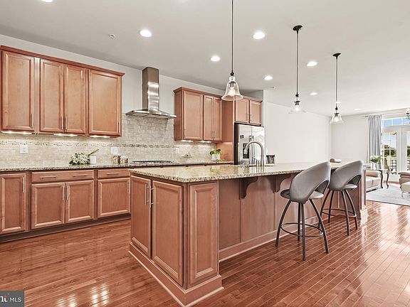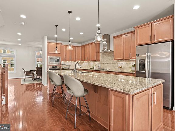 Welcome to this exquisite brick front NV luxury townhome located in the Westside District of highly sought-after of Maple Lawn. This immaculately maintained, original owner residence offers the perfect blend of elegance, comfort, and convenience. As you step inside, you'll immediately be captivated by the freshly painted interiors, gleaming hardwood flooring, and an abundance of natural light that streams through lofty windows with transom accents and atrium doors. The stylish recessed lighting and elegant light fixtures further enhance the beauty of this spacious home. The gourmet kitchen boasts 42-inch cabinetry with undermount lighting, granite counters, tile backsplash, and a large island with a breakfast bar. Stainless steel appliances, including a gas cooktop and range hood, along with two pantries, one of which is a walk-in, make this space truly functional and inviting. The open concept layout allows for seamless flow between the kitchen, living room, and dining room. The sizable living room is perfect for gatherings and relaxation, featuring two sets of atrium doors to the deck and a modern gas fireplace. Upstairs, you'll find the spacious primary bedroom complete with two walk-in closets and an en-suite bath with a double vanity and floor-to-ceiling tiled shower. Two additional bedrooms, a full bath with double vanity, and a convenient laundry room round out the upper level. The entry-level fourth bedroom offers versatility to suit your needs, whether as a home office, exercise room, or guest suite, complete with a full bath. A rear-loading two-car garage with epoxy flooring and finished walls provides ample parking and storage. Enjoy the ease and convenience of having shopping, dining, and entertainment options all within the Maple Lawn community. An array of amenities await your arrival, including an outdoor pool, community center, fitness facility, multiple playgrounds, picnic pavilion, dog park, basketball, tennis, pickleball courts, and so much more!