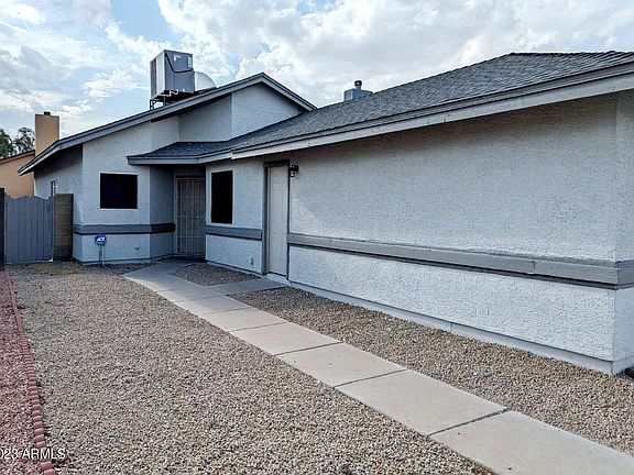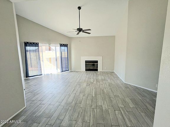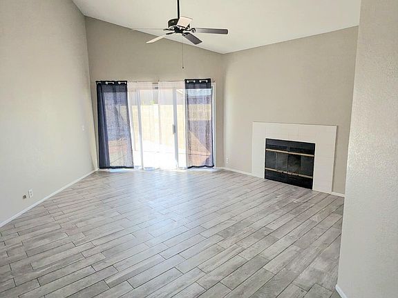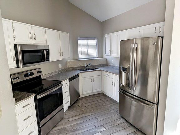 Amazing 3 bedroom 2 bathroom house with NO HOA. It has vaulted ceilings and has been freshly painted. Brand new stainless steel kitchen appliances (stove, dishwasher, microwave) and newer fridge. Kitchen has granite countertops. New hot water heater and 3 years old AC. Roof is 6 years old. Both bathrooms have been upgraded and there's upgraded faux wood plank tile flooring. It has ceiling fans in each room and faux wood blinds throughout. Low maintenance backyard.