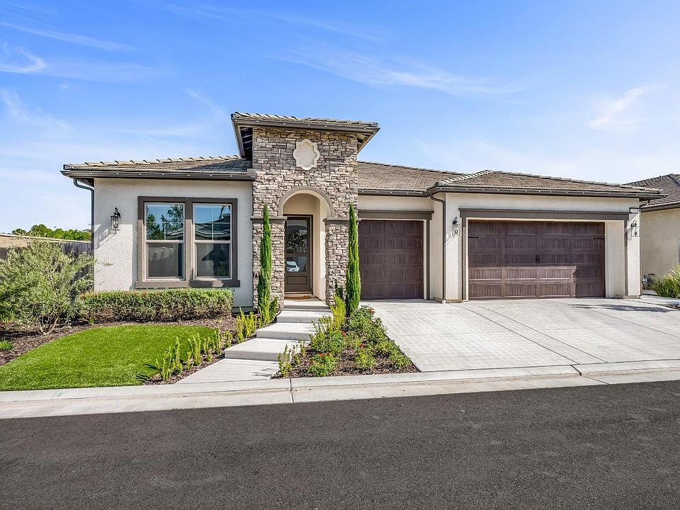 Better than new Bella floorplan by Granville Homes located in gated Granville community at Copper River Ranch. Beautiful Tuscan inspired exterior w/ stone pillars leading you to the entrance. Fantastic single story floorplan with 4 bedroom, 3 baths, and formal dining room that can also be used as den or office. As you enter, you are greeted with a long hallway that leads to the main part of the home. Open concept greatroom, kitchen, and dining room, perfect for entertaining guests. Designer features include,wood plank tile flooring, neutral color palette, designer lighting and fixtures, plantation shutters, and motorized blackout shades. A 4 panel glass sliders opens into the spacious covered patio, ideal for indoor-outdoor living. Cook and entertain in the modern kitchen that hosts an oversize island, white shaker cabinetry, gorgeous quartz countertops with beautiful subway tiles, and KitchenAid appliances. Isolated bedroom and bath in the front part of home. Private master suite located in the back of the home w/ it's own access to the backyard. Spa-like master bath with oval tub, oversized step in shower with 2 shower heads, separate vanities, and your dream closet! 2 additional bedrooms, a full bath, and a spacious laundry room completes this home. Additional features like 3 car garage, drought tolerant landscaping and synthetic grass, and Owned Solar makes this the ideal home! Top rated Clovis Schools. Schedule your tour today!