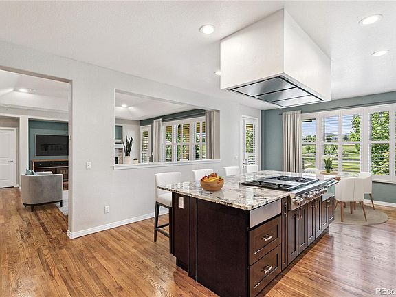 The heart of the home is the expansive modern kitchen, which boasts a generous bar/sitting area, a walk-in pantry, and an array of top-of-the-line appliances including a Wolf commercial-grade cooktop, oven, steam oven, warming drawer, wine/food vacuum sealer drawer, sub-zero refrigerator and a Cove dishwasher. Semi-custom-built cabinets with Perlick wine/beverage fridges complete the dining room. The great room features a gas fireplace, vaulted ceiling, and large windows flooding the room with natural light. Move to the large Trex deck to enjoy the breathtaking mountain and golf course views.