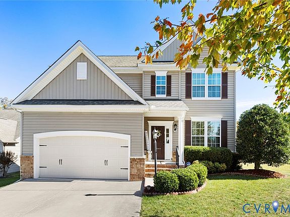 Discover this beautifully maintained 4-bedroom, 3-bath single-family home nestled on a spacious corner lot in the highly sought-after Magnolia Green community. With over a quarter acre and built-in irrigation, outdoor living is a breeze. The fenced backyard offers privacy and a perfect space for pets or play. Step inside through a stunning foyer featuring newer acacia hardwood floors that flow throughout the main level. The kitchen boasts updated granite countertops, modern fixtures, a gas range/cooktop, a generous island, and abundant cabinet space—ideal for both everyday living and entertaining. A cozy breakfast nook and formal dining room complete the heart of the home. The expansive family room includes a large ceiling fan and is pre-wired for surround sound, creating a comfortable space to relax or host guests. A first-floor bedroom and full bath offer flexibility for guests or multigenerational living. Upstairs, enjoy a versatile loft-style family room perfect for movie nights or gatherings. The second floor also features a convenient laundry room, two spacious bedrooms, and a luxurious Owner’s Suite with a tray ceiling, ceiling fan, oversized walk-in closet, and a spa-like bath. Community Amenities: Magnolia Green offers miles of walking trails, a championship golf course, clubhouse, multiple pools, playgrounds, and easy access to Hull Street and Route 288.