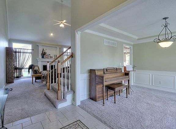This is wonderful 1.5 story home features 4 bedrooms, 2 ½ baths and has been well maintained throughout; when the home was built they bumped floor plan out 2 feet giving you additional living space. This bright and airy floor plan features a formal dining room, spacious great room with vaulted ceilings and fireplace. Kitchen has hardwood floors, updated appliances and cozy breakfast area.