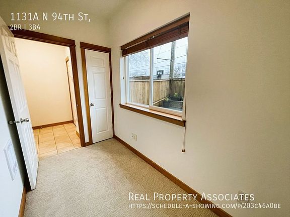 Introducing a Bright Corner Unit 2 Bed + Den Townhome in the desirable Licton Springs/Greenlake neighborhood of Seattle, WA. This townhouse boasts a fenced courtyard, perfect for enjoying the outdoors in privacy. The spacious interior features 2 bedrooms, 2.5 bathrooms, a small den/office, and a full-size washer/dryer for convenience. The modern kitchen is equipped with stainless steel appliances, while the gas fireplace adds a warm & inviting touch to the living space. Hardwood flooring throughout adds a touch of elegance, and the fenced patio/yard provides additional outdoor space. With a 1 compact car garage and ample street parking, this townhouse offers both convenience and comfort for its residents. Don't miss out on the opportunity to call this townhouse your new home! This Unit received lots of natural light and has a nice floor plan. The main floor features a large living/dining room area, bathroom and large kitchen. On the upper you will find 2 substantial sized bedrooms, 1 master with full bathroom and 1 common-sized bedroom with its own full-size bathroom. Each bedroom has ample closet space. The entry level features a den with small closet, the laundry room, and a single compact car garage. There is ample street parking right in front of the unit. Easy Commute to Green Lake area, UW, (Northgate Light Rail Station and bus lines), and all public Transit. Small Dog & Cat allowed. We encourage you to drive by the property and street, its worth taking the time. - Pets allowed on a case by case basis -$45 application fee per adult - Renter's legal liability insurance is required and part of Benefit Package ($30 monthly). If qualifying legal liability insurance is purchased by tenant separately and proved, Benefit package is reduced to $15 monthly. 1 Compact Car Garage Ample Street Parking Bright Corner Unit Fenced Court Yard Fenced Patio/Yard Full Size Washer/Dryer Gas Fireplace Hardwood Flooring Laundry/Utility Room Small Den/Office Ss Appliances