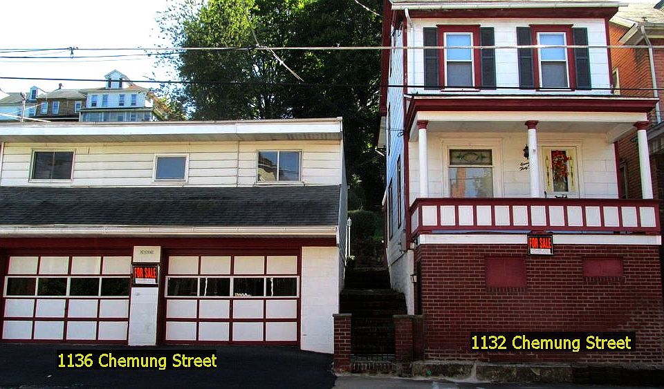 For Sale, two adjoining properties, one price for both. Property one: For Sale - House, three bedrooms, large bathroom including washer and dryer, kitchen includes electric range, refrigerator, hard rock maple table with four chairs, large hutch, microwave. Oil hot water cast iron radiator heat, New Yorker oil furnace new in 2008. 200 AMP electric service installed in 2012. Nice size basement. One car garage at end of 200 ft. lot. Good solid starter home, move in ready. Room sizes: Kitchen - 14 x 11 feet Dining Room - 12 x 13 feet Living Room - 15 x 11.5 feet Back Bedroom - 11.5 x 11 feet Front Bedroom - 15 x 11.5 feet Bath Room - 9.5 x 13 feet Attic - 12.5 x 13 feet Basement - 29.9 x 12.5 feet Property two: Large two car garage with small apartment above, apartment was used for storage and would need work to return it to use as an apartment. Rubber roof installed in 2008. Lot size 25 x 200 feet. Each property on separate deed. Will not sell separately, asking $42000.00 for both properties. Properties located at 1123 & 1136 Chemung St. Coal Township, PA 17866 five seven zero-850-3157 or five seven zero-648-0785.