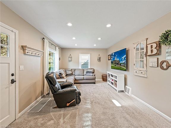 Calling HGTV! This move in ready bungalow is fit for television! Tastefully updated with that desirable farmhouse feel; you will instantly fall in love! Neutral painting throughout, new lvt flooring in the dining room and kitchen and painted cabinets with new counter tops, backsplash and SS refrigerator. The updated bathroom features a tiled tub/shower combo with new vanity and mirror. Convenient first floor bedroom along with two additional bedrooms upstairs, both generous in size. The finished basement provides additional space for the family, along with separate unfinished space for laundry plus all your storage needs. You will appreciate the attached garage, large private backyard with newer deck, concrete slab patio and fire pit, just an awesome place to entertain! Literally nothing to do but move in and call this place HOME!
