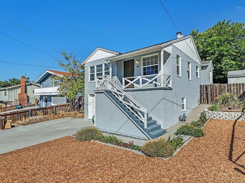 Turn key and move right in! All of the charm of yesteryear with newer amenities throughout. Oversized, double gated lot with room for cars, boat or RV. Kitchen has quartz counters, newer Shaker cabinetry, large farm sink, Chef's gas range, microwave and designer porcelain tile flooring. The light filled living room includes a cozy wood stove and recently refinished hardwood floors. Lovely bathroom with soaking tub. There are French doors leading to the composite decking, perfect for morning coffee and evenings at the grill. Through the gate to the back area you will find a red barn, beautiful shade trees and plants all around. In addition, there are raised garden beds to grow veggies and herbs. Attached garage with additional shop space. Also included are a newer washer and dryer and stainless refrigerator. There is just so much to love about this home, it's an opportunity not to be missed.