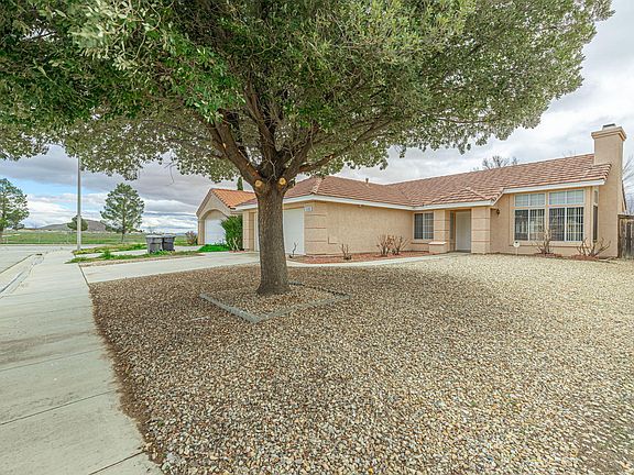 Wonderful opportunity for home ownership of this adorable single story home in Rosamond near United Park and Edwards Air Force Base! Title records show 3 bedroom (1 bedroom currently used as an office - no closet but easily built into nook.) Tile flooring at entry and kitchen/dining areas. New tile-look vinyl flooring in both bathrooms. Wonderful open floor plan, clean and well taken care of! Spacious primary bedroom suite features 2 closets, ceiling fan, slider to back patio and semi-vaulted ceilings with ensuite bathroom featuring dual sinks, shower enclosure with glass door & low-flow toilet. Permitted covered patio runs the length of the home to enjoy the private back yard. Truly awesome permitted 12x16 workshop with electrical can be used in a variety of ways - maybe a SheShed, future ADU, playhouse...? This home has so many features to appreciate - blinds throughout, brick fireplace in living room, newer disposal & hot water heater, freshly painted exterior & central heat & air. This home is move-in ready once you choose your flooring. SunRun Solar lease saves money & is contingency of sale. Great cul-de-sac street near United Park! Convenient to Edwards AFB, 14 frwy and shopping. So much to love about this one! Schedule your private showing now!