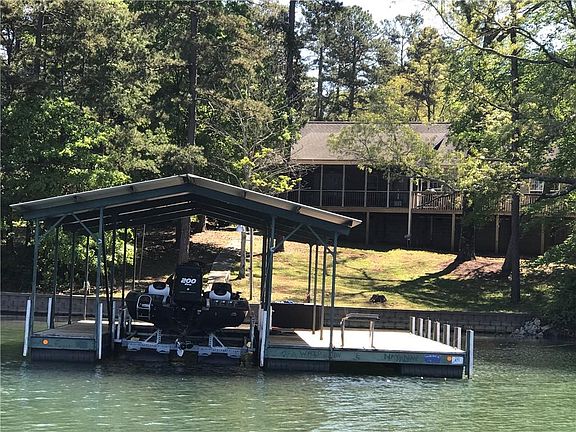 Three Bedroom Three Bath Single Level Lake Home On Fantastic Level Waterfront Lot With Great Views And DEEP Water! Very Short Open COE line. Wheeled Walkway Leads To Covered Slip Dock With Boat Lift.Water Depth at end of dock is 20 feet at normal pool then reaches to 25 feet plus a short distance in front of dock Home Features Master With His And Hers Baths And Walk Through Closet. Large Open Living Dining Room Combination. Recent Upgrades Include Berber Carpet, Concrete Block Retaining Wall And NEW American Standard Heat Pump( With Transferable Warranty) And New Solid Duct Work. Walk Out To 11 X 26 Ft Screened Porch And A 11 X 33 Ft Deck. Great Home For Weekends Or Primary Residence- Plenty room in front to add detached garage- Ready for your decorating touch!