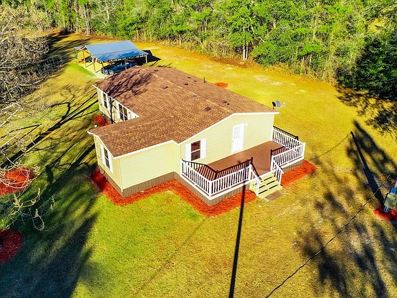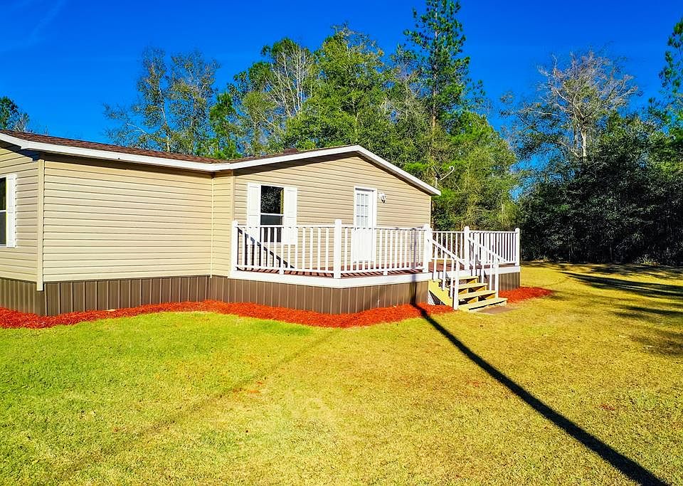 You will love this newly renovated and private mobile home just outside the entrance to Coffee County Hunting & Fishing Club. The home sits on just over a 7-acre lot and features a long private driveway that leads you back to this gated property. This home has a new roof, vinyl siding, HVAC, some of the plumbing has been updated, new lighting and more. There is a 3-bay carport/ lean to for vehicle and equipment storage. You will love sitting on the large porch that overlooks this beautiful, secluded property. Laminate wood flooring is featured throughout the homes living areas and kitchen, while the primary bedroom has carpet. The newly renovated Kitchen features new modern cabinets, counter tops and stainless appliances. There is an additional room off of the kitchen that can be used as an office or formal dining area. In the primary bath you will find a his & hers sink and shower/tub combo. Enjoy a private country lifestyle just 30 minutes from Brunswick. Call your agent today!