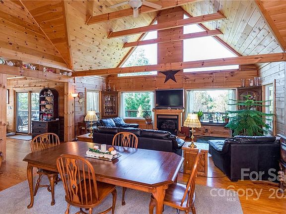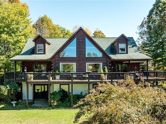 This spacious log home sits on THE BEST parcel within Green River Highlands gated community. 4.49 acres at the end of a cul-de-sac surrounded by 300 acres of forest and mountain views out your window. It's a short walk or golf cart ride down to the river to fish or kayak but the house is set on a hill far above the flood zone. You'll feel a million miles away from everything, surrounded by nature and quiet, yet everything you need is only minutes away. In less than 5 minutes, you're on Highway 74. Only 11 minutes to Tryon International Equestrian Center. More than 3,700 sq ft on 3 levels with 3 ensuites, wood floors throughout, 2 story Great Room with soaring ceilings and massive log beams. This is a site built, quality home. Lightning protection system. Heated inground pool, hot tub, 2 car side entry garage. There's also a separate heated 16 x 32 building that's been used as a workshop. Turn it into living space! Green River Highlands allows vacation rentals. Community park.