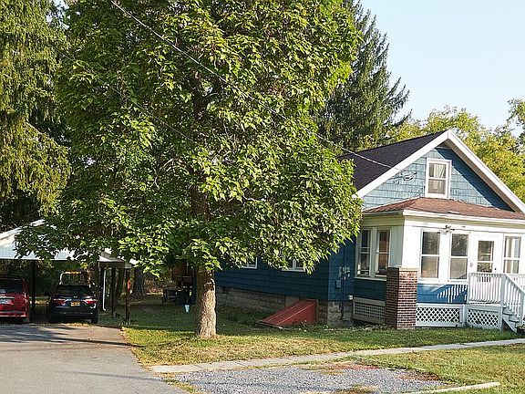 This home has many features and benefits. A short drive to downtown Ithaca! BOASTING Over an ACRE of land that backs up to eighty miles of bike and hike trails. Three bedrooms on the first floor. Hardwood throughout. The upper level is a large open space with hardwood floors. This flex space can serve as a fourth bedroom, Yoga Studio, Home Office, or whatever suits your needs. The Enclosed Back porch is perched over the back yard which backs up to the woods. The front porch has plenty of light to study and read. There is very good privacy and lots of room for dogs and pets. The open living space has great flow. There is a full basement too. The outdoor Pavilion serves as a garage or picnic area. This is a great location right near town yet in the country. Public water and sewer. The home is priced below the Z estimate and believed to sell fast because of the location.