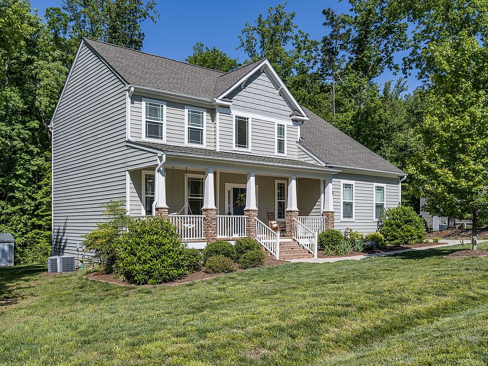 Beautiful home on large lot, beautiful trees, and a rocking chair front porch. This 4 bedroom home boast open floorplan with large kitchen, breakfast bar, stainless appliances, and breakfast room overlooking deck and great backyard. Bright and spacious family room with lots of windows, bookshelves and gas fireplace. Drop zone at entry from garage, formal dining, and additional living room which is perfect for home office. Great size laundry room with lots of storage.