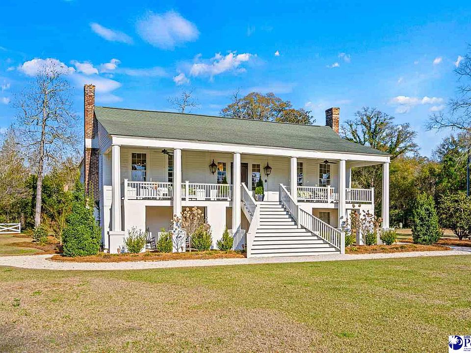 The Historic Red Doe Plantation, a quintessential Southern estate, offers a glimpse into the past with its Antebellum raised-style cottage built in 1846. Situated on 2.94 acres in Florence, South Carolina, this meticulously restored home boasts 4 bedrooms and 4 bathrooms across nearly 4900 square feet. Step through the original front double doors adorned with large copper gas lighting to discover a world of historic charm. The entertaining level features 12-foot soaring ceilings, original bubble glass windows, a gourmet kitchen with a soapstone island and butlers’ pantry, formal dining and living rooms, a library/office, and original pine flooring adorned with intricate moldings, doors, and mantel pieces lovingly restored to their former glory. Descend to the lower level and be greeted by custom hand-hewn wood ceiling beams in every room. Here, the primary bedroom awaits, complete with a large bath boasting a copper tub, custom tile shower, and leathered quartz countertops. Additionally, this level offers a spacious informal den, two separate laundry rooms, and two additional bedrooms and baths, all featuring quartz countertops and tile showers. Outside, two grand rain-covered porches, an outdoor back patio, and a guest house waiting for remodel provide ample space for entertaining amidst mature foliage illuminated by custom copper gas lighting and outdoor landscape lighting. The property also features a sprinkler system sourced from an outdoor water well. Fully restored with new electrical, plumbing, HVAC, Rinnai tankless water heater, gas lanterns, and more, the Red Doe Plantation has been the backdrop for countless weddings, parties, and celebrations. With its unique blend of glamour and historical charm, this property presents a rare opportunity to own a piece of Southern history and a coveted community event venue. All the glamour and uniqueness instilled into this home make Red Doe Plantation a once in a lifetime find.