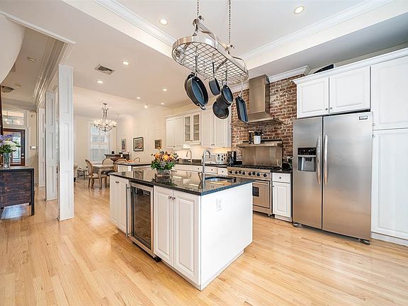 Who doesn't want a magnificent backyard in an urban setting? This exceptional home in the heart of Hoboken features a private oasis that is perfect backdrop for family activities, private gatherings or quietly uncorking after an exhausting day of zoom meetings. While you revel in the hidden delights of your backyard, the timeless, brick facade of this turn-of-the-century townhome stands stoically on one of the most sought-after blocks in all of Hoboken. No. 1132 Garden Street is an impeccably maintained, 2,900sqft home with five bedrooms and three full bathrooms on a deep 18 x 100 lot. You enter on the parlor level and are welcomed by a sunlit, open-concept floor plan with soaring 13ft ceilings. Step through the dining area to the gorgeous, gourmet kitchen. It is a showcase of style and convenience with exposed brick, a collection of high-end, stainless-steel appliances including a Viking 6-burner gas range, granite counters, a massive island, and a built-in, 24-bottle wine fridge. Continue through the elegant French Doors where you can dine alfresco on your 290sqft rear deck as the late afternoon sunlight dapples through the verdant backyard canopy. Then it's just one flight up to your enormous Master Bedroom Suite. The entire 2nd floor serves as an inspired private retreat - using another Bedroom as the Walk-In-Closet of your dreams! The spa-like, walkthrough Master Bath with frameless shower and large tub is a tranquil place to renew and revitalize. Serenity now! A skylight brightens your walk up to the 3rd floor and two more large bedrooms. They are separated by the washer & dryer closet and a full bath with limestone tiles, a glass shower, and your jetted tub. The garden level is superbly finished. It offers an immense family/media room with a gas fireplace and a wet bar, a bedroom with a shared ensuite full bath, and a private entrance from the street. It is great for making houseguests feel comfortable. It is even better for entertaining your friends, offering a ground level doorway to access that wonderful backyard. There's even a full sub-basement with 7ft ceilings to provide more storage than any family should ever need. Want more details? Frankly, there are just too many to write about. Please ask for our feature sheet. This amazing home is in one of Hoboken's iconic neighborhoods where it is quiet and peaceful except when they're throwing amazing block parties or engaging a parade of Trick-or-Treaters. It's located just a couple blocks from Washington Street and many of Hoboken's vibrant boutiques, restaurants, streateries, farmers markets, grocery stores, and parks. The Hudson Waterfront Walkway is a few blocks away. And it's just minutes to Manhattan by bus or by boat. Also worthy of note: the 1100 Garden block has never lost power nor flooded during nor'easters, windstorms, or superstorms. This is luxurious urban living at its finest. Contact listing agent for a 3D walkthrough.