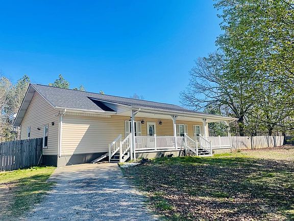Enjoy country living in this open concept one level home! Open Kitchen, Dinette, Living room. Living room has corner oil system log fireplace. Two bedrooms feature private bathrooms. Tile flooring in bathrooms and utility room. Covered front porch & large back deck connecting to 27' above ground pool with deck. New liner 9/22 (chlorine system). Fenced backyard with 22x24 detached 2 level garage w/ roll up door. Additional shed does stay. Roof new 2019, Central Heat & Air new 2020.