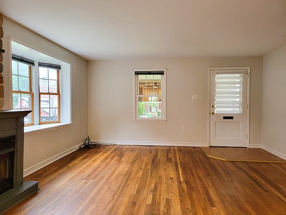 This charming duplex is located on the outskirts of Lancaster in a suburban neighborhood, just off of Route 23 for quick and easy commuting! You'll be captivated by the hardwood flooring throughout, built-in shelving, bay window in the living room for plenty of sunlight, and gorgeously updated kitchen and bathroom! The 1st floor offers an open layout with a living/dining combo with gas fireplace to cozy up to. The kitchen provides a welcoming place to prepare meals with recessed lighting, a breakfast bar, stainless appliances, and classic white cabinets, including a pantry cabinet with convenient pull out drawers. Upstairs, you'll find a nicely updated bathroom, hallway linen closet, and three bedrooms, including a primary bedroom with three closets and a ceiling fan. An unfinished basement provides lots of storage space and a washer and dryer with utility sink. Unwind in the fenced yard with plenty of greenery and a fire ring for outdoor relaxation. A shed is included as well as one off street parking space in the back. This home emanates charm and elegance with upgrades throughout to make for a comfortable and convenient place to live! 1 pet up to 25lbs (at maturity) permitted with additional fees One year contract, renews month-to-month after the first year.
