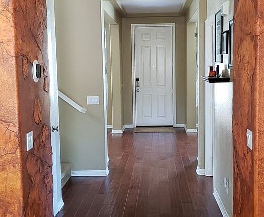2 Story South Corona Home - South Corona Beauty this is a very nice home on cul-de-sac. This Super clean 5 bedroom 4.5 bathroom home has great curb side appeal featuring 2 master bedrooms one is upstairs and one is downstairs. All bedrooms are good size and have vaulted ceilings. Walk through the front door where you have a formal dining room and living room. Beautiful kitchen with granite counter tops and nice size island. Kitchen has a nook area and opens to the family room complete with a fireplace. Wood flooring downstairs and carpet in bedrooms and all upstairs. Upstairs laundry room, his/her closets in the master with custom closet organizers, upstairs master bedroom has a retreat area great for a home office or just relaxing, custom shutters throughout, and all bedrooms have walk-in closets & ceiling fans. Nice covered patio, spacious back yard, fruit trees and views of the Cleveland national forest. 3 car garage with a back garage door for pull through parking on the 1 car garage side. This home is in a great location close to schools, shopping, restaurants, and fwys. Owners are open to a pet please text me picture and description it is subject to owners approval. See criteria below: 1. fico score over 600 no collections totaling over $1,000 (only exception is medical collections) 2. look for 2.75 to 3 times rent in gross monthly income 3. no evictions 4. no criminal background beyond minor traffic ticket or misdemeanors over 5 years old 5. no open bks must have been discharged over 2 years ago 6. Cant have more than 2 late payments on rent within last 2 years (RLNE5083951)