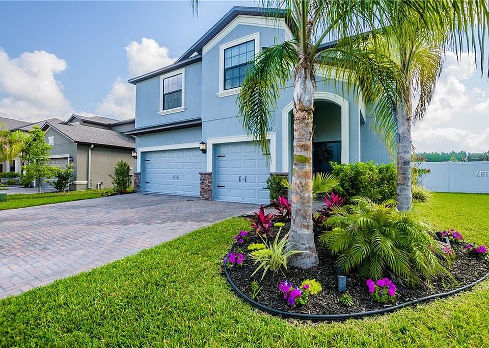 LIKE NEW & MOVE IN READY 5 bedroom/4 bath home built in 2015! Numerous upgrades throughout! Located in the desirable Trinity Preserve Neighborhood; zoned for Odessa Elementary, Seven Springs Middle, & Mitchell High School. Situated on a quiet street your own piece of paradise awaits on your premium, fenced in, water view lot! Spread out and enjoy the open floor plan with great entertaining space. The luxury kitchen includes all energy star stainless steel appliances, granite countertops, 42" maple wood cabinets, center island w/ sink and pantry with lots of storage! The loft area on the 2nd floor is the ideal hangout spot for your family! Come and relax in the expansive master bedroom that includes a separate sitting area or indulge in your master bathroom with its soaking tub, dual sink vanity, and walk-in shower. Plenty of room for your wardrobe in your custom master closet too! Spectacular laundry room w/ bonus space for an office or craft area! Outside you will enjoy your hot tub or watch the little ones play on the playground! Sellers are including a home warranty! Low HOA and NO CDD. Schedule your showing today.