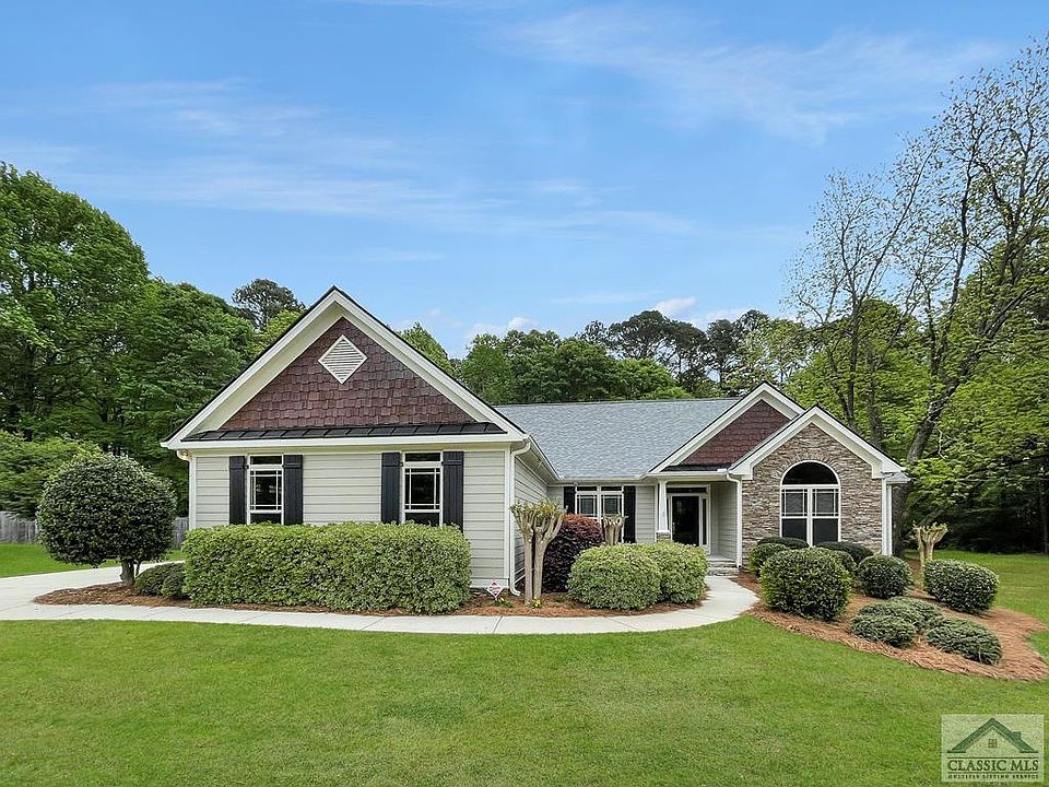 First viewing is Sunday, April 25th from 1-3pm. Fabulous move-in ready one level with 4 bedrooms and 3 baths Oconee home just outside of downtown Watkinsville and convenient to Athens and UGA. Step in the front door of this very well kept open floor plan with hardwood floors in the living spaces, tile in the bathrooms, and new carpet in the bedrooms. The Great Room is spacious with a stack stone fireplace, vaulted ceiling and open to the Eat-in Kitchen. There are cable connections on the side wall and above the fireplace whichever you prefer. The Eat-In Kitchen has granite counter tops, tile backsplash, custom cabinets and stainless steel appliances. Sit at the breakfast table to a great view outside and to the view an array of birds. The Dining Room is off the Kitchen along with the a closet pantry. The Office is immediately to the right when you come in the door and has a vaulted ceiling. The split floor plan has the Master Suite on the left side of the home has trey ceilings with great views to the private backyard. The Master Bath has a double vanity, separate shower and garden tub, HUGE walk-in closet, and water closet. The additional other 3 bedrooms are on the right side of the home with a Jack & Jill bathroom for two of the bedrooms and one hall bathroom for the other bedroom and guests. The Laundry Room is between the garage and the Kitchen. The garage is a 3 car garage. The home has a wifi HVAC control unit that can be controlled while you are away from the property. There is a whole house central vacuum system. The HVAC has and Ionizer and is 5 months old. Step out the back door onto the patio that is an oasis for relaxing and grilling with your friends and family. There is a lot of room for the kids and animals to exercise. The owners have created a bird sanctuary in the backyard that is amazing to watch and enjoy. There are a couple old pecan trees that do produce pecans! There is a LARGE fig tree that produces as well in the backyard. The lot is just over one acre in size. Lee Ridge is a one street small subdivision with sidewalks and that is conveniently located a few minutes to downtown Watkinsville and 10 minutes to UGA and Five Points. Come view this great home this Sunday, April 25th from 1-3pm.