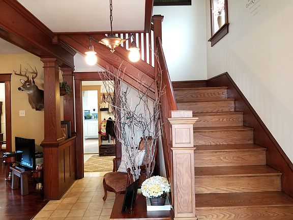 Charming stately home in Akron Borough. Walk into the beautiful foyer with open stair case and gleaming hardwood floors. The spacious living room welcomes you as you walk thru the 12 lite glass doors into the bright dining room all with beautiful hardwood floors. Spacious working kitchen with plenty of storage & second staircase plus exterior door to the back deck overlooking the fenced in backyard perfect for your 4 legged family members! Upstairs you will find three spacious bedrooms with closets & storage, two rooms have hardwood floors. Enjoy the large driveway with 1 car garage, additional yard area beyond the fenced portion. Large wrap around porch adds to the charm of this home! One of the best things about this home is the neighboring park and extra open space available to be used anytime! If you appreciate a well maintained home full of charm & character, this is the home for you!!